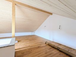 Die geräumige Wohnung befindet sich im 1. und 2. Obergeschoss des 3-Familienhauses. Offene Wohn-Küche, Tageslichtbad, Schlafzimmer mit begehbarer Nische, das komplette Dachgeschoss schließt sich als offenes Studio an, Garage im Innenhof, auf Wunsch mit eigenem Gartenanteil.